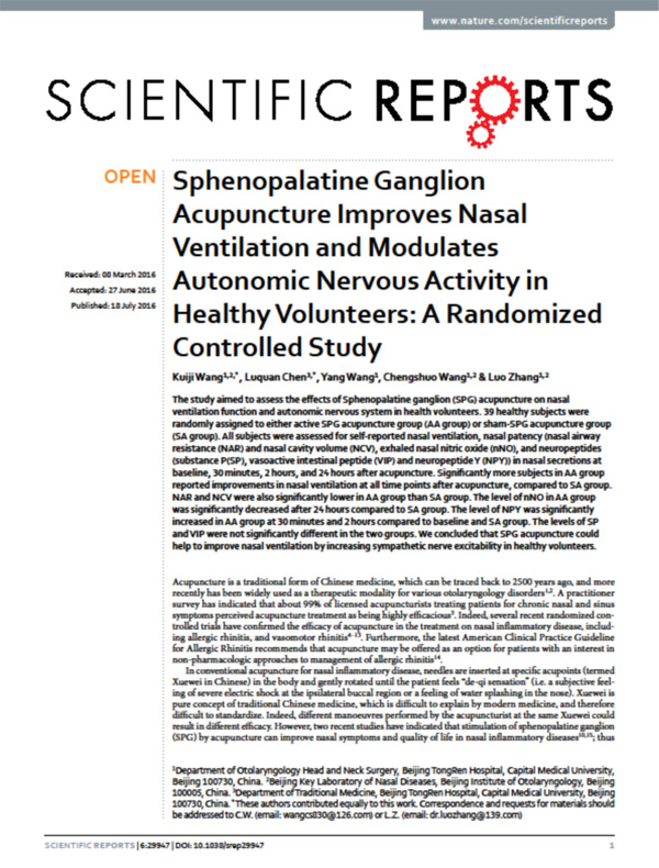 王奎吉,陈陆全,王阳等。关于针刺蝶腭神经节的中西医基础研究,SCI影响因子5.228。