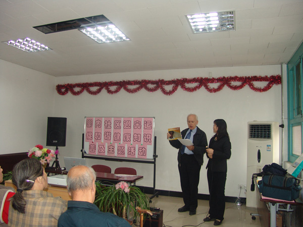 2007年WHO防聋官员Andrew W Smith视察我国城市社区防聋工作情况并赠送由耳研所编译的《WHO耳和听力初级保健手册》