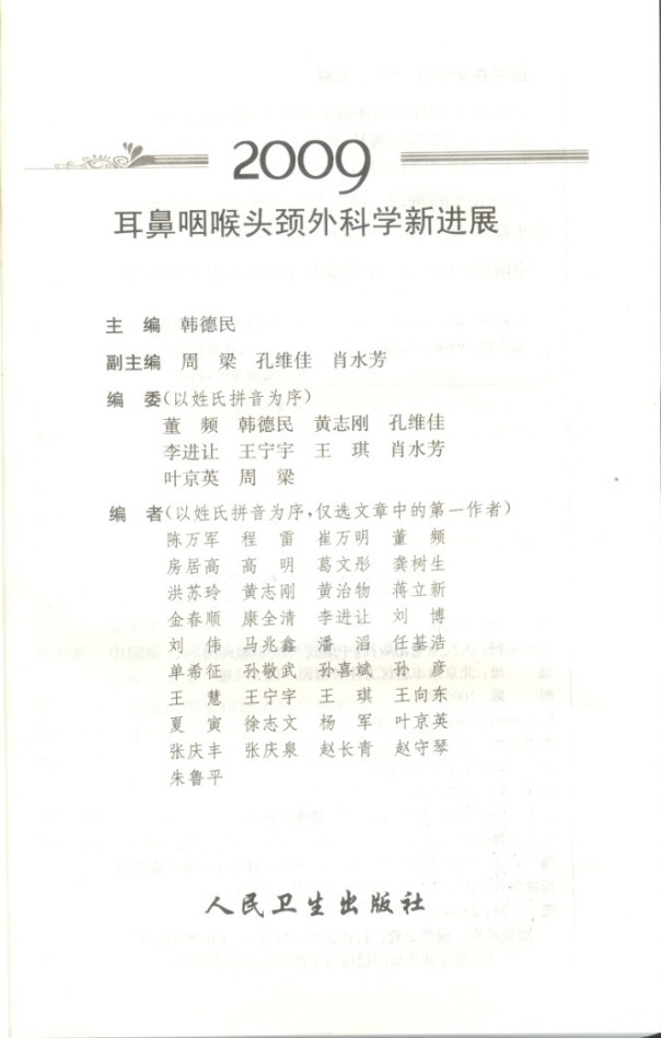 2009耳鼻咽喉头颈外科学新进展